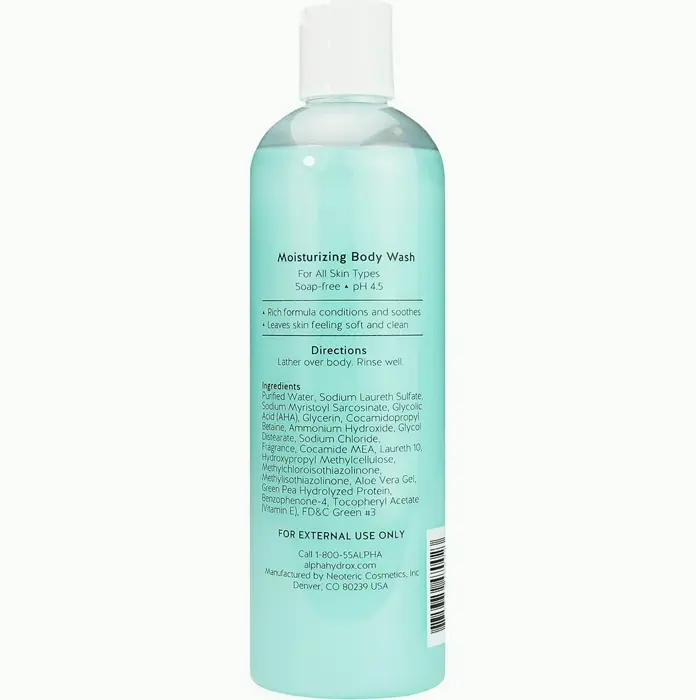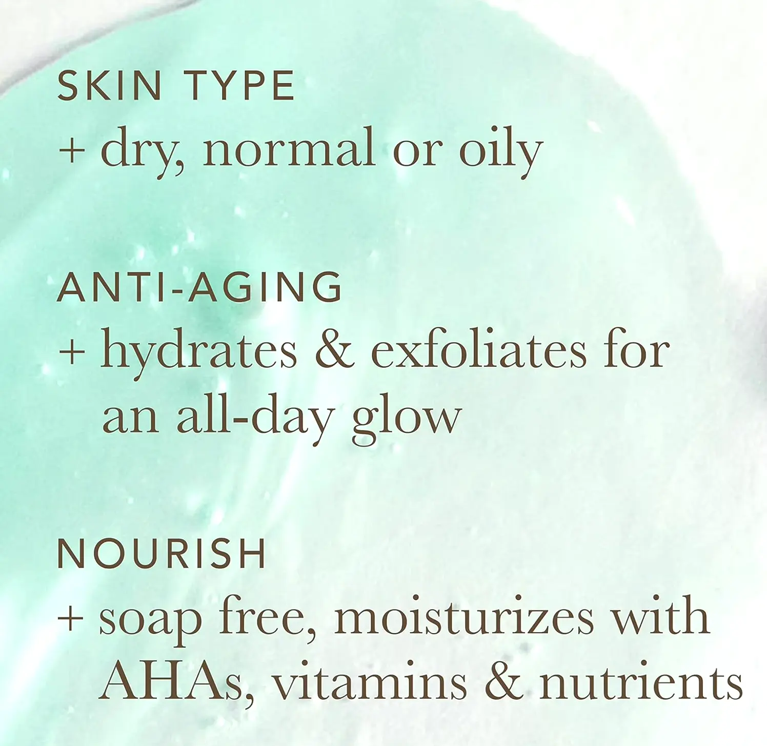 Enjoy rejuvenating effects with our exclusive soap-free body wash. Packed with Glycolic AHA, Vit E, and soothing Aloe Vera, it refreshes and moisturizes skin for a smooth, invigorating finish. Gently eliminate dead skin cells for a radiant appearance. Suitable for all skin types and crafted with a balanced pH of 4.5, this product rejuvenates. Reveal youthful skin with each use.