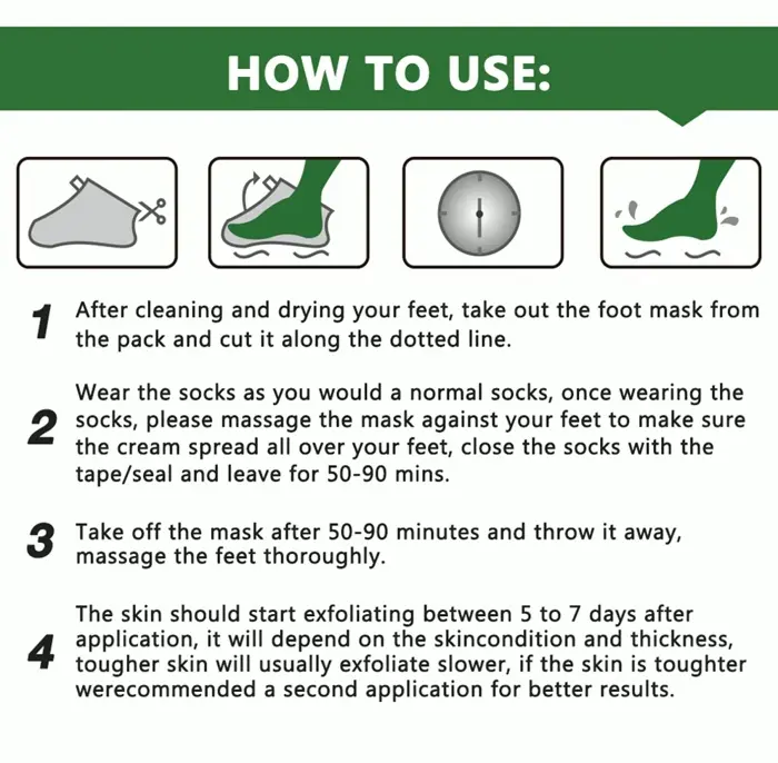Wearable Feet Mask: Crafted like socks, it allows the foot to absorb the essence completely. Wear regular socks on top of the foot masks for optimal absorption. Exfoliating Foot Mask: Efficiently eradicates hardened, cracked, and callused skin. Heals dry and cracked skin while protecting your exfoliated feet. Baby Soft Skin: Use the foot peel mask for 50-90 minutes, then remove. Dead skin peels off, resulting in baby-soft feet. Safe to Use: Contains natural ingredients and plant extracts, making it safe to use. Improves dryness, roughness, aging, and cracking; reduces appearance of lines. Perfect gift: Ideal for both men and women, like a good foot spa. Great gift choice.