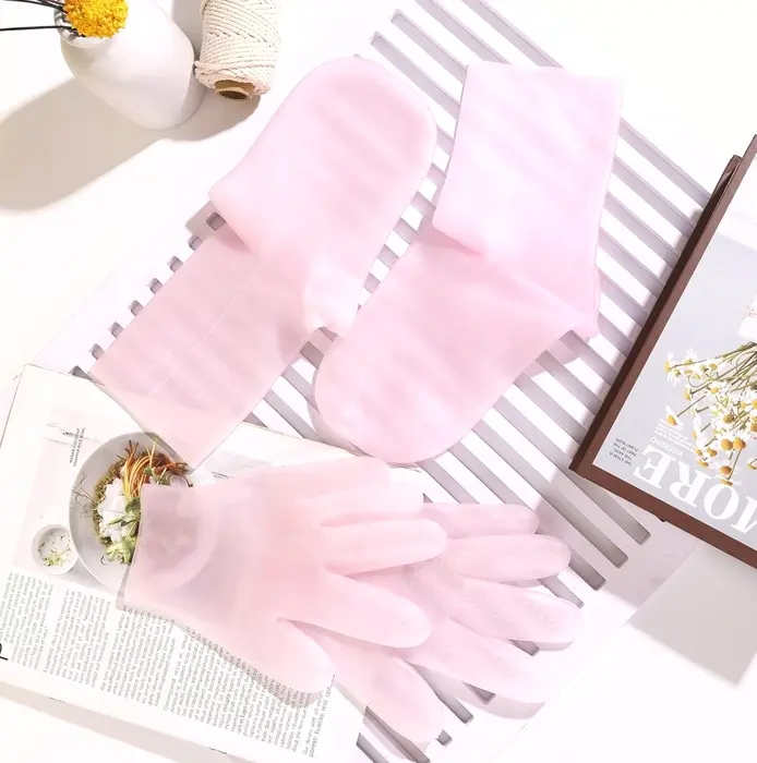 Contains 1 pair of hydrating silicone footwear and 1 set of gel mitts. Perfect for foot care, hydrating rough calluses, repairing cuticles, and enhancing look of hands. Simple to use, socks are large and gloves are one size, suitable for most people. Suggest using lotion (not included) prior care. Use two to three occasions a week, half an hour per time. Useful accessory for home spa treatments, skipping costly spa trips. Great present for lovers of skincare spa. Constructed of SEBS plant silicone, safe and washable. Suitable for individuals with cracked heels, standing for long times like teachers, etc.