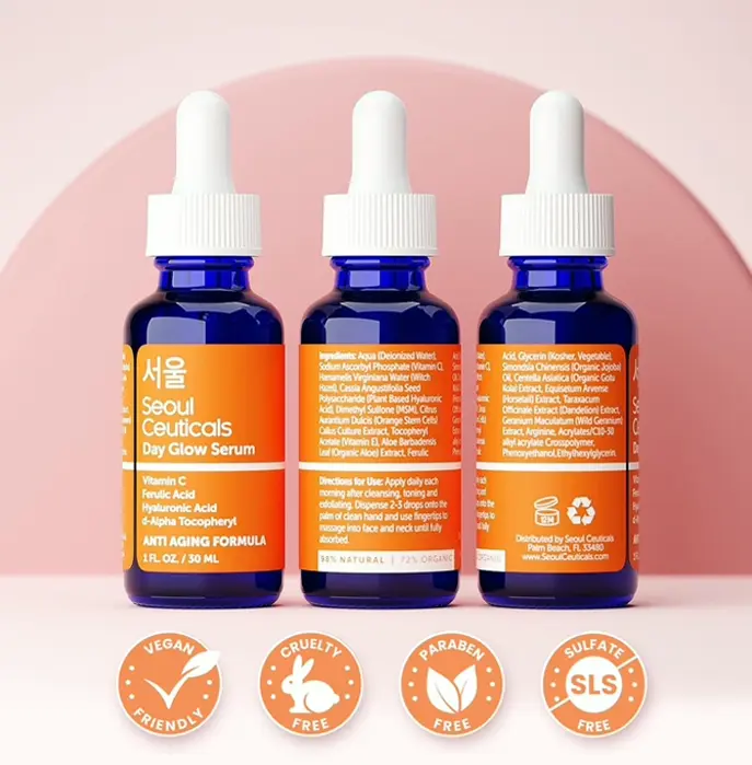 Discover the effective effects of this Korean Vitamin C serum we’ve formulated with high-quality active components. Begin seeing improvements in just 3 weeks. This solution proven to reduce wrinkles, crow’s feet, and tiny wrinkles. Gain a more youthful complexion and fade sun spots. Minimizes pores, clears blemishes, prevents breakouts, and reduces the appearance of blemishes scars. Great under K-Beauty cosmetics.