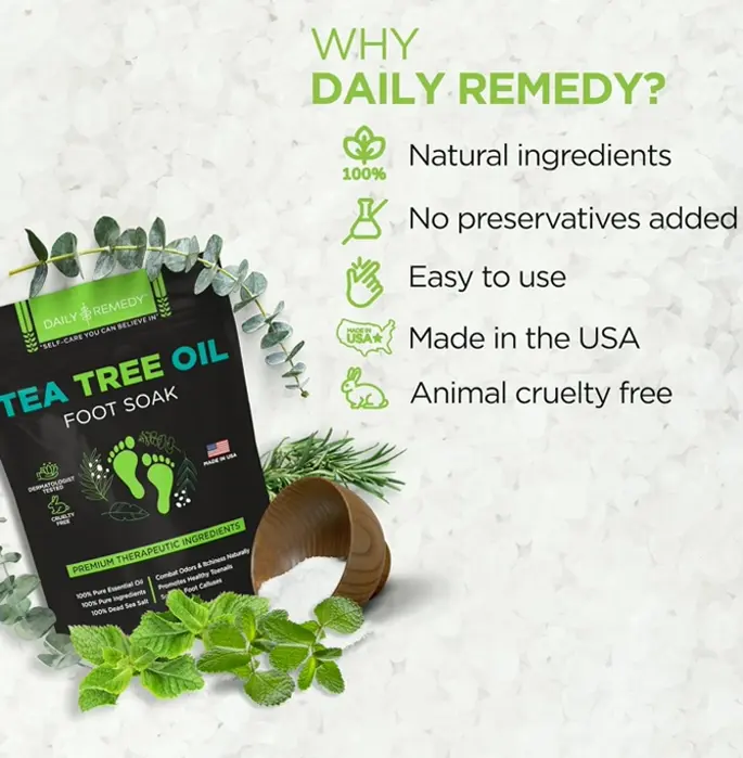 🦶 RELAX & SOOTHE ACHY FEET – Daily Remedy’s tea tree bath is used by athletes around the globe to rest tired feet, reduce calluses, calm itchy toes and repair damaged toenails, maintaining your toes clean.
