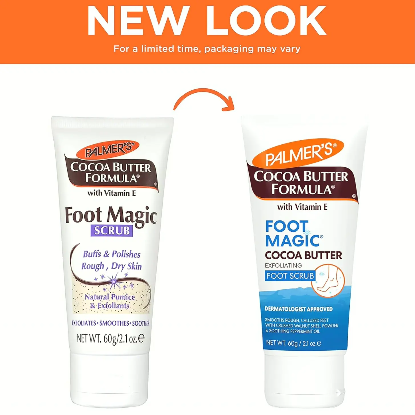 Palmer’s Brand Foot Exfoliator: Palmer’s Cocoa Butter Foot Magic Scrub revitalizes and smooths tough areas on feet, especially rough spots on the heels and foot soles; Simultaneously hydrates, smoothes and soothes tired feet.
