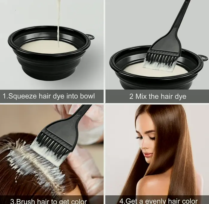 Essential Dye Set: One color bowl, 1 hair dye brush, one hair color comb-brush, two hairdressing clips. Ideal for salon hairdressing purposes and personal do-it-yourself hair dye. Necessary accessories for DIY hair coloring. Durable Tools: All tools are simple to use, wash, and reuse. They make your hair dyeing process smooth, providing precise and thorough mixing of hair color. Please be aware: Hair dye not included. Mixing Bowl: Folding design, easy to keep and transport. Made of premium plastic with grip for convenience. Hair Color Brushes: 2 varied shapes suitable for any hair types such as short or long, curly or straight hair. Designed with versatile yet firm bristles for even distribution of hair dye, ideal for root touch-ups. Hair Clips: Ideal for styling, easily used to pin up hair without falling or damaging.