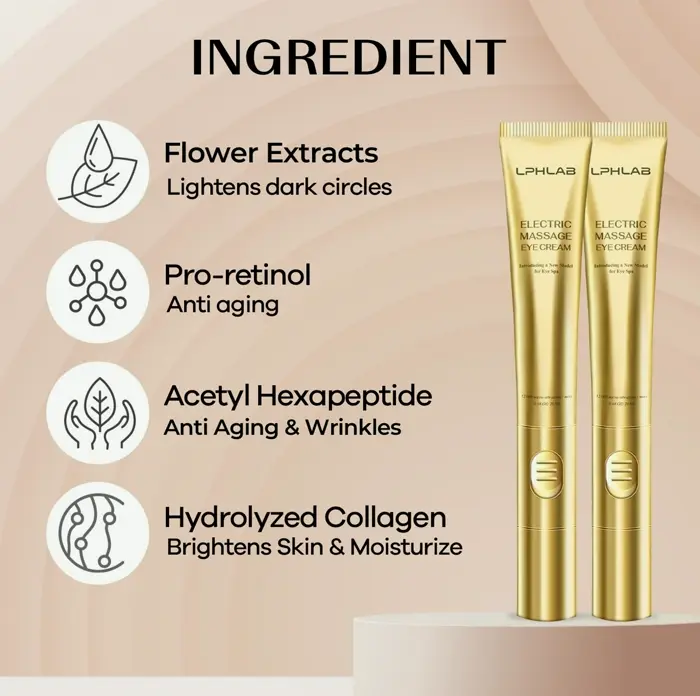 Anti-Wrinkle under eye cream uses a special formula for skin recovery around the in the eye region. Electric massage tip is added for easy use and enhanced absorption. Suitable for all skin types. This cream for wrinkles and puffiness penetrates quickly, with no greasy residue. Key natural ingredients include hyaluronic acid, polypeptides, retinol, and vitamins. Unscented. We provide natural, affordable, and effective anti-aging skincare to revitalize glow. Satisfaction Guaranteed: Try LPH LAB eye cream for puffiness with our two-month money-back guarantee. If the item doesn’t work for you, reach out and we’ll happily refund you!