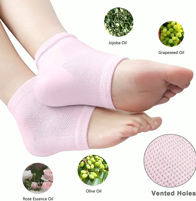 Enjoy intensive moisturization treatment with these gel-infused socks, designed to smooth dry and rough heels. Natural gel is packed in vitamin E and plant oils. Enhance look through constant hydration. Open-toe style prevents cracked skin, letting you to wear them on-the-go. Gel socks stay in place during walking, keeping feet are not too hot. Features an built-in silicone heel pad to keep the lotion locked on your feet. Dermatologist-tested gel accelerates recovery, boosting lotion efficiency by 90%. Unisex vented construction accommodates most sizes, made from 90% cotton and 10% spandex. Reusable for day-to-day use.